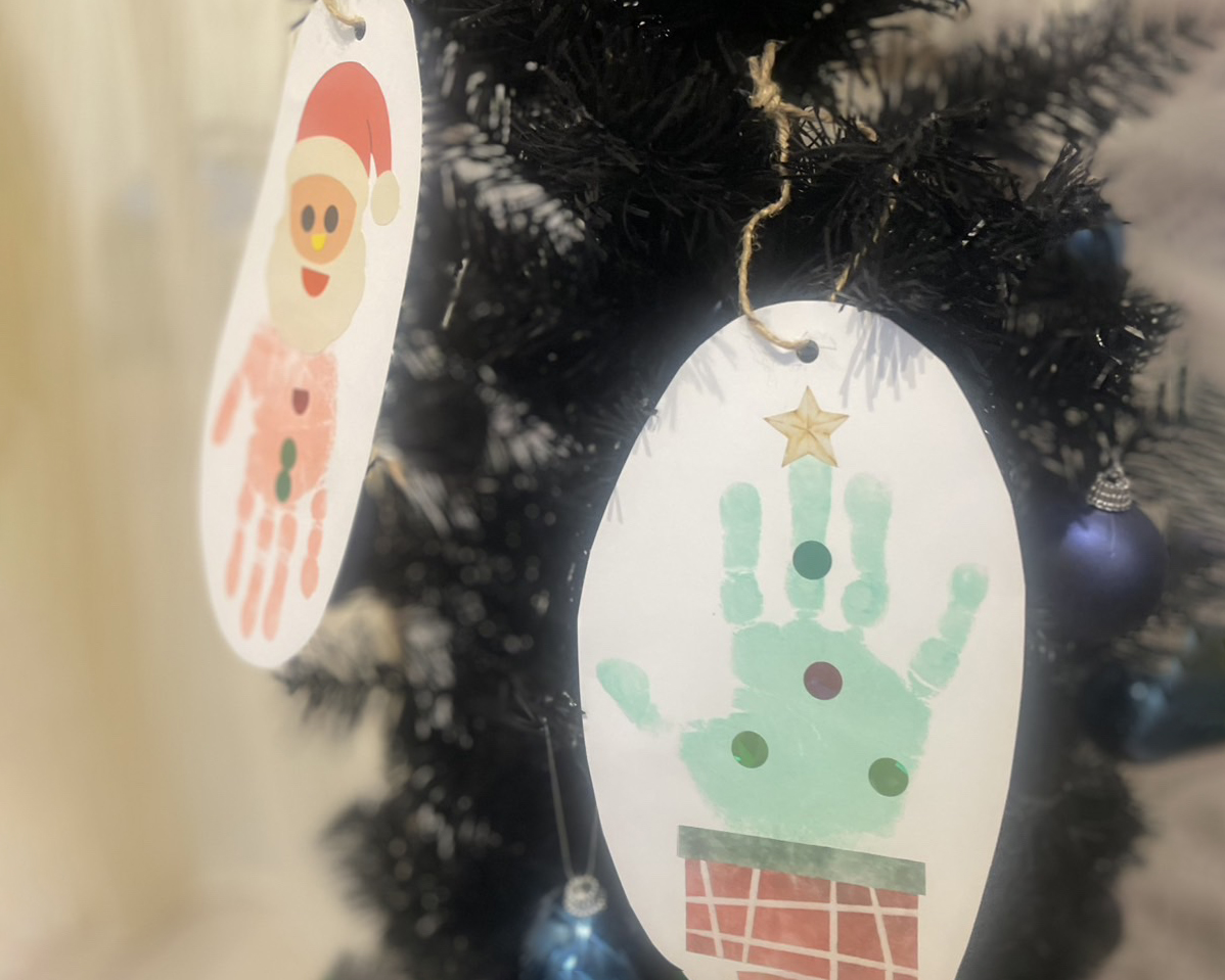 手形でサンタクロースとクリスマスツリーをつくろう!