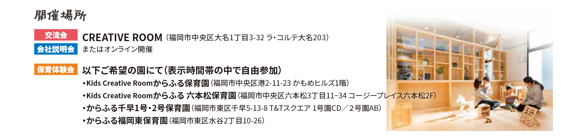 ◾️ 現地開催の際はお子さまをお預けいただきながらご参加いただけますので、小さなお子さまがいらっしゃる方も安心してお越しください。